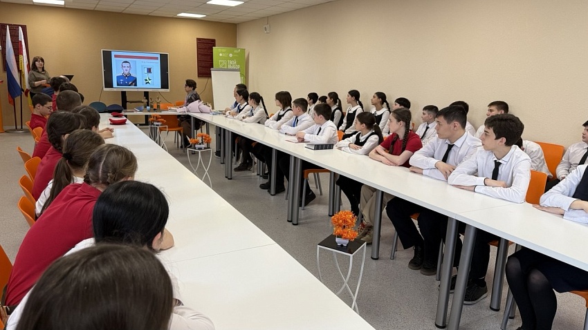 На уроке Мужества присутствовали  юнармейцы  8 «В» класса /классный руководитель Билаонова О.К./  Ребята основательно подготовились: рассказали не просто факты, а целую историю жизни героя — о его характере, выборе и подвиге. Юнармейцы умело сочетали документальные сведения с эмоциональными акцентами — это помогло всем в зале прочувствовать масштаб личности и значимость поступков Героя Российской Федерации Егора Секержитского, чье имя с достоинством и гордостью носят ученики класса.